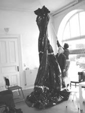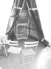 ist dabei selbst in das Thema Haus- und Heimat-bauen involviert: Rauminstallation